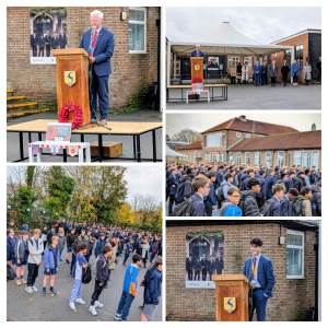 On Armistice Day, we gathered as a whole school to listen to a speech of remembrance from the Headteacher, Mr Moane and listen to the Head Boy, Victor Artemi, read the poem 'In Flanders Fields' by John McCrea.