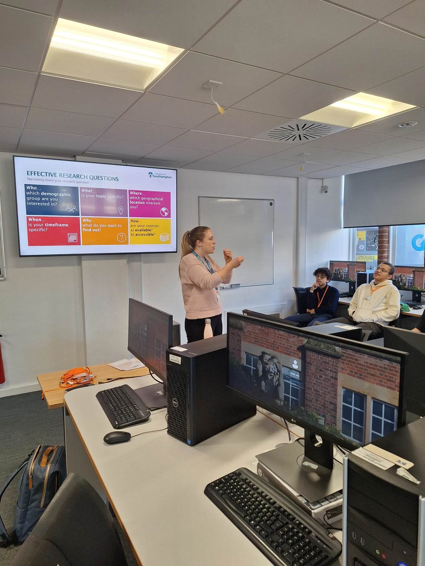 In October, I took a group of HPQ students to a Study Day at Southampton University. Students were taught how to find relevant research using Boolean search methods (using AND, OR and NOT as part of the search criteria to define the output more effectively) and how to ‘call’ a book from the library. The researchers at the University talked to each student about their topic and helped them to refine their ideas and consider the phrasing of their research topic questions to ensure that their question was robust and interesting enough for them to pursue.