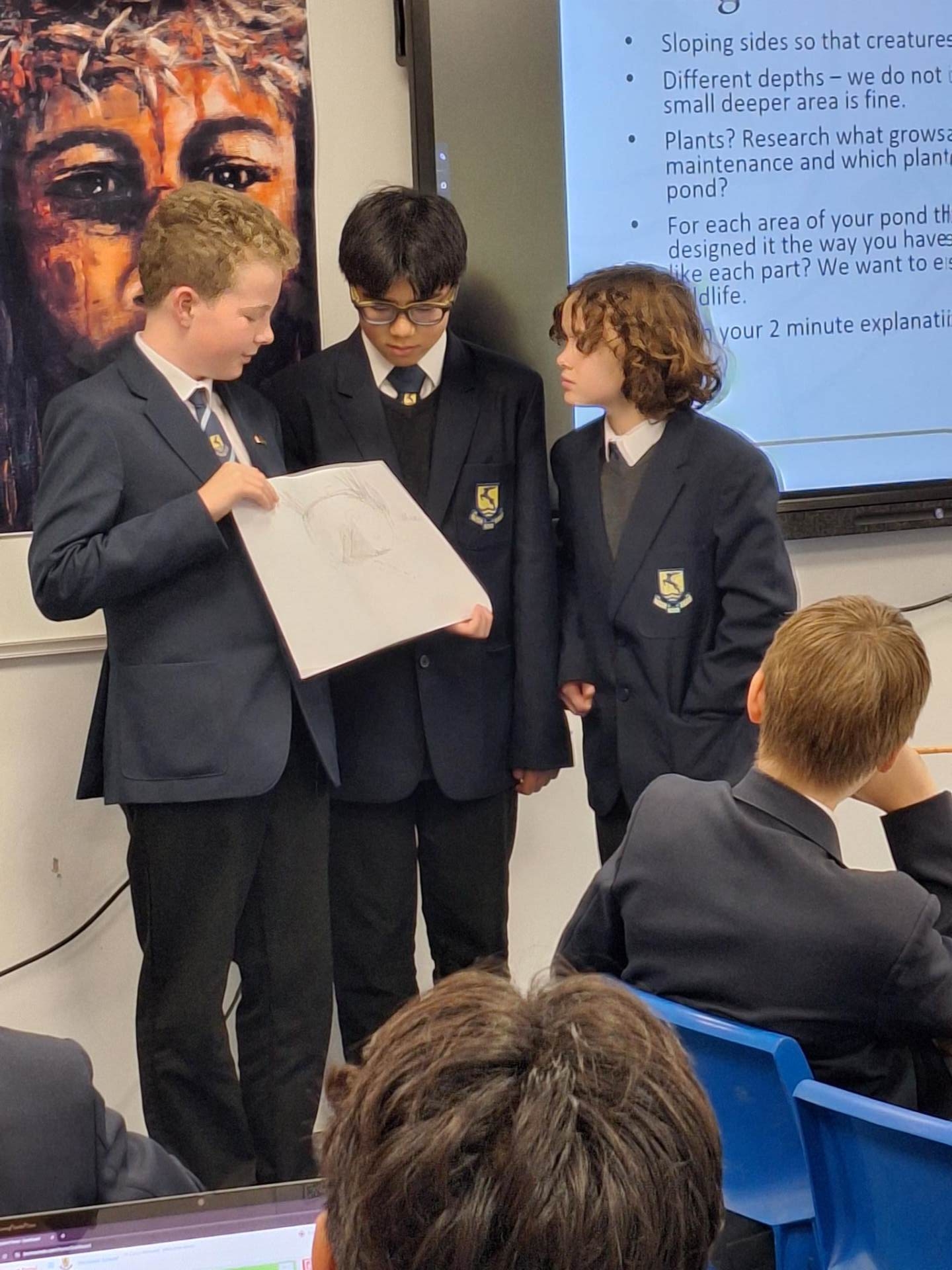 During Eco Council meetings in October we have been researching pond design and planting. Students in pairs, presented their design ideas and Basil Dredge, the other of our Senior Prefect Eco Council leaders, made careful notes of the best elements of each design after discussion with the whole group. Basil will now combine the best of each idea to form one pond design and this will then be presented back to the group for feedback – this project will be truly inclusive and a credit to all involved. In designing the pond, students have considered the following: