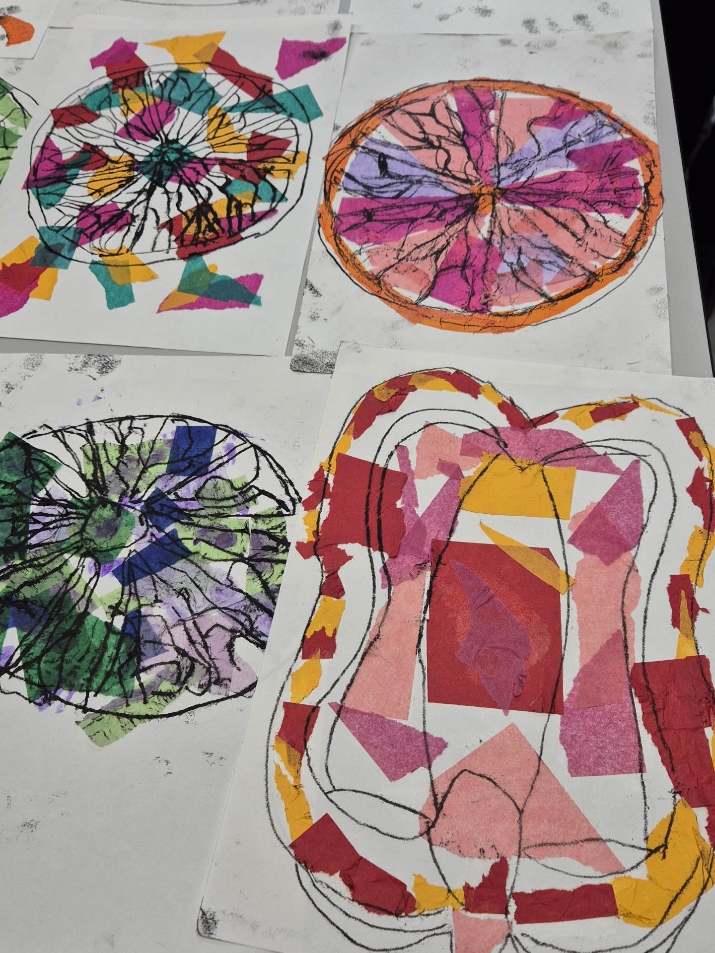 This week in the art department, year eight had an introduction to print making, creating some fabulous outcomes in a chine colle, mono-printing workshop.