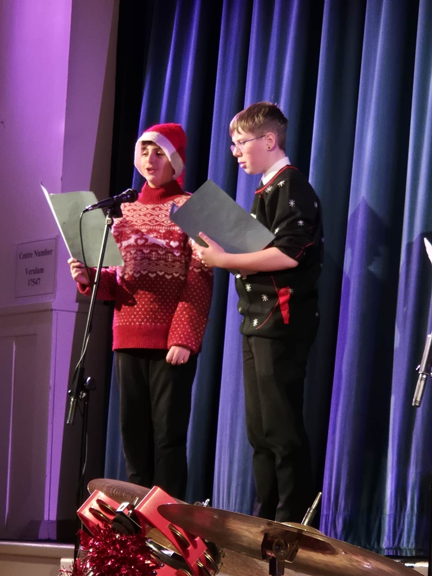 As usual, Verulam put an alternative spin on the ‘Christmas’ vibe. Amongst many brilliant performances, Ollie Kerr, playing the electric guitar showcased a medley of Christmas songs in a heavy metal style to rapturous applause. Albert Hart showcased his drumming skills in glam rock style with ‘Christmas Time, don’t let the bells end’ by the Darkness. The school choir is finished off the event with a Shakin’ Stevens track – Merry Christmas Everybody. A festive finish to a fabulous evening of entertainment.