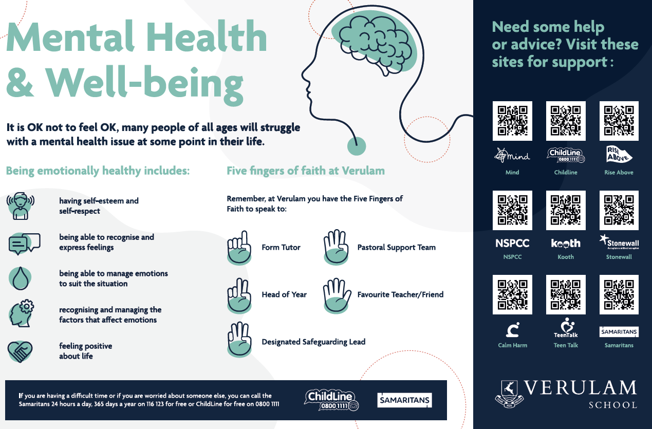 Mental health and well-being support are signposted around the school, reminding our students how to access support, should they need it.